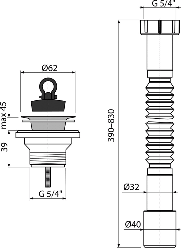 - სიფონის დაკავშირებისთვის ხრახნიანი კავშირი 5/4 "