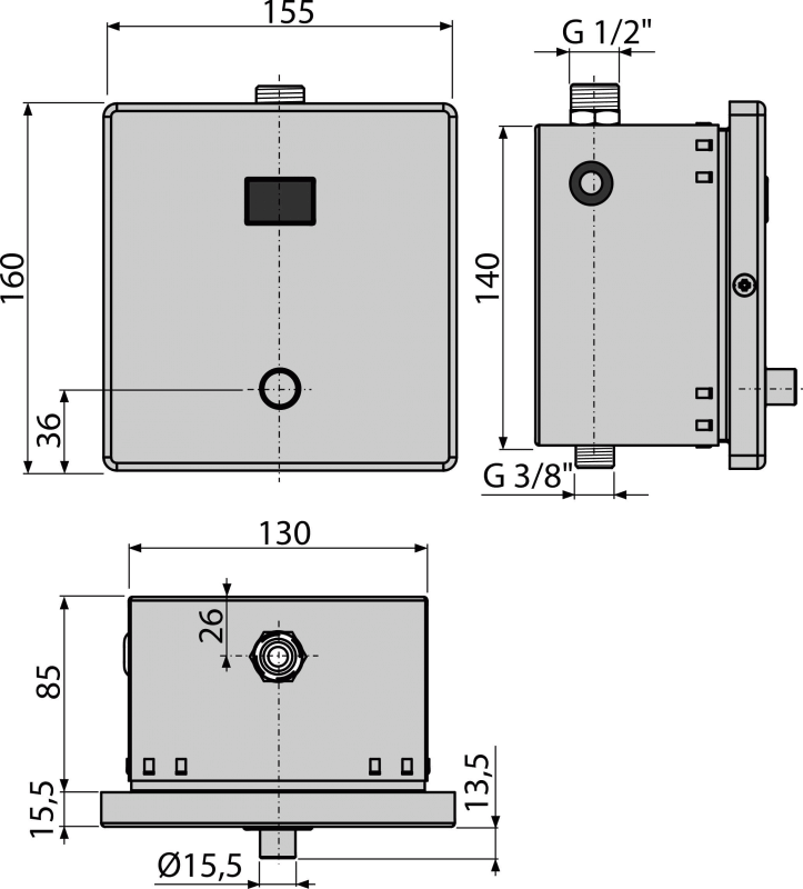 ავტომატური ჩარეცხვის მოწყობილობა მექანიკური ჩარეცხვის ფუნქციის პისუარისთვის, მეტალი 12 ვ (ქსელთან დამაკავშირებლით)