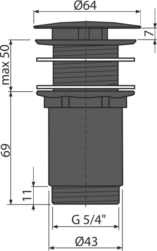 ნიჟარის სიფონის 5/4", სრული მეტალი, დიდი დამხშობით, ჩამკეტის გარეშე, ნიჟარისთვის გადინების გარეშე
