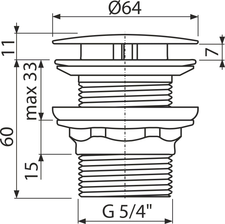 ნიჟარის სიფონის 5/4", სრული მეტალი, დიდი დამხშობით, ჩამკეტის გარეშე, ნიჟარისთვის გადინების გარეშე