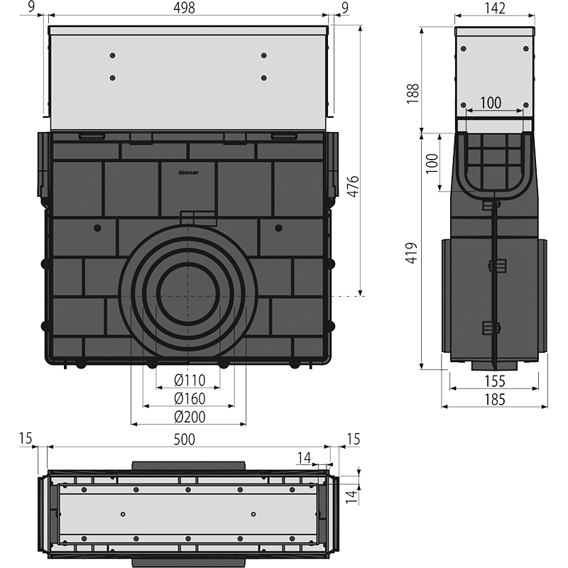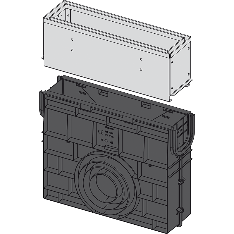 სადრენაჟე არხის ქვიშის ხაფანგი განკუთვნილი ასიმეტრული დაქანებისთვის 160 მმ, მოცინკული ფოლადი