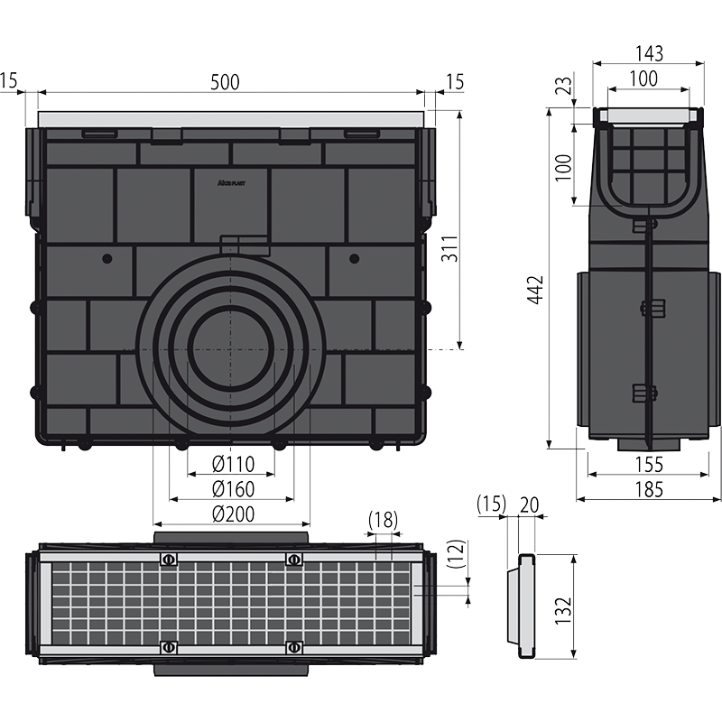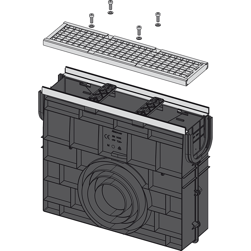 - მოცინკული პერფორირებული ბადე - არხის კორპუსში ფიქსაცია ოთხი უჟანგავი ფოლადის ჭანჭიკით, სანიაღვრე უჯრედის ზომა 12x18 მმ.