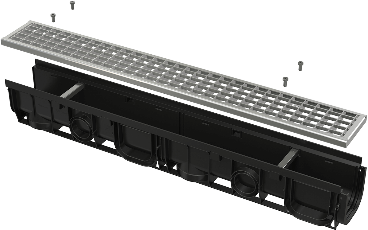 სადრენაჟე არხი 100 მმ პლასტმასის ჩარჩოთი და მოცინკული ცხაურით B125