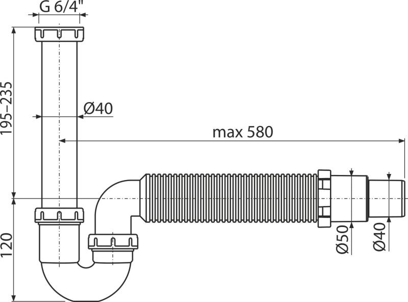 - ხრახნიანი კავშირი 6/4" ხელსაბანის ან ნიჟარის გადინების დასაკავშირებლად