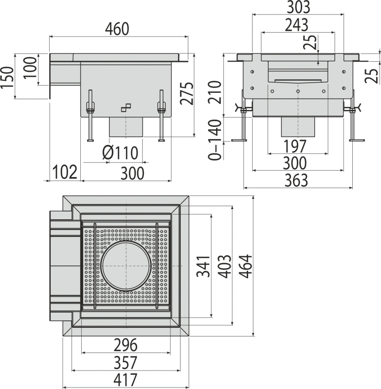 - რეგულირებადი ფეხები დიაპაზონში 20-140 მმ