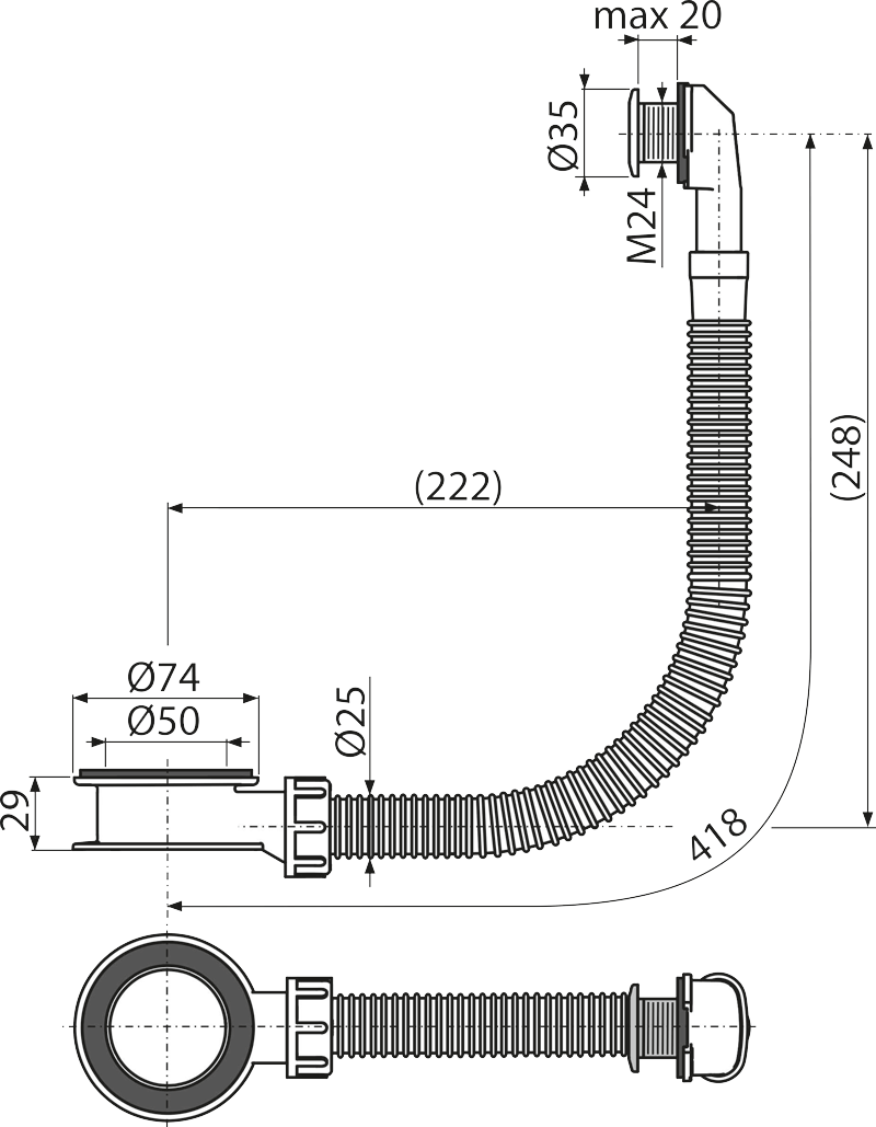 • სიფონის გადინების და გადადინების თეთრი კარკასი