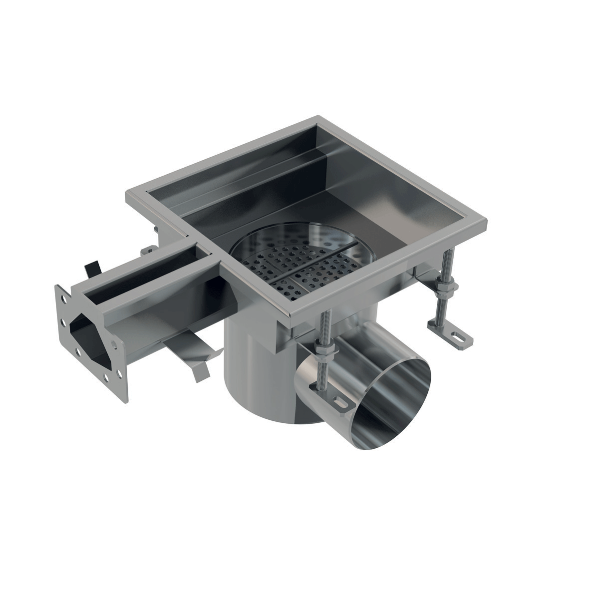 სამრეწველო იატაკის ტრაპი სწორი ჭრილით 250×250, უჟანგავი ფოლადი AISI 316L