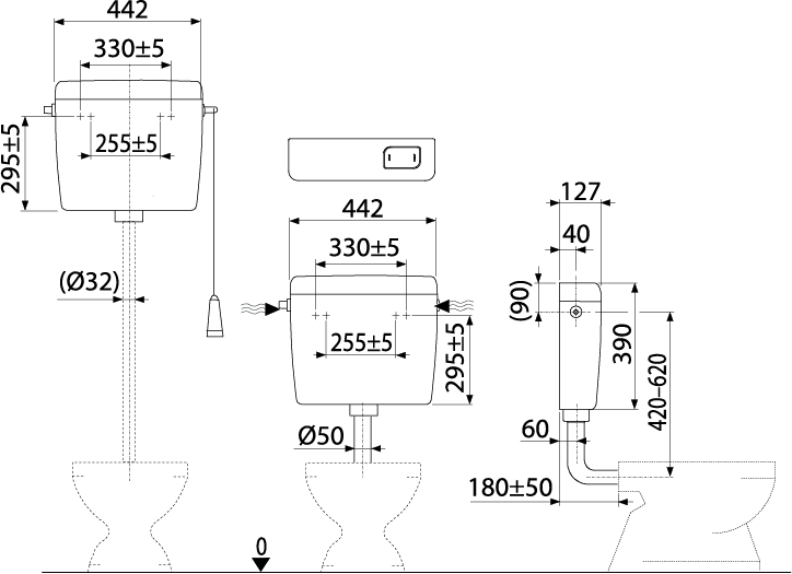 - მუხლი Ø50 / 40 მმ დაბალ სიმაღლეზე განთავსებული ავზისთვის