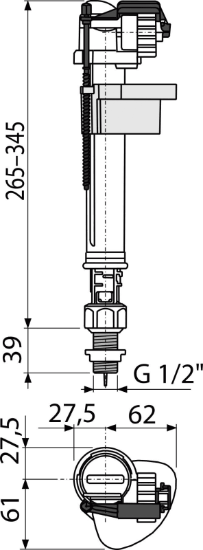 ავზის შესავსები მექანიზმი, ქვედა გადინებისთვის, მეტალის ხრახნისით