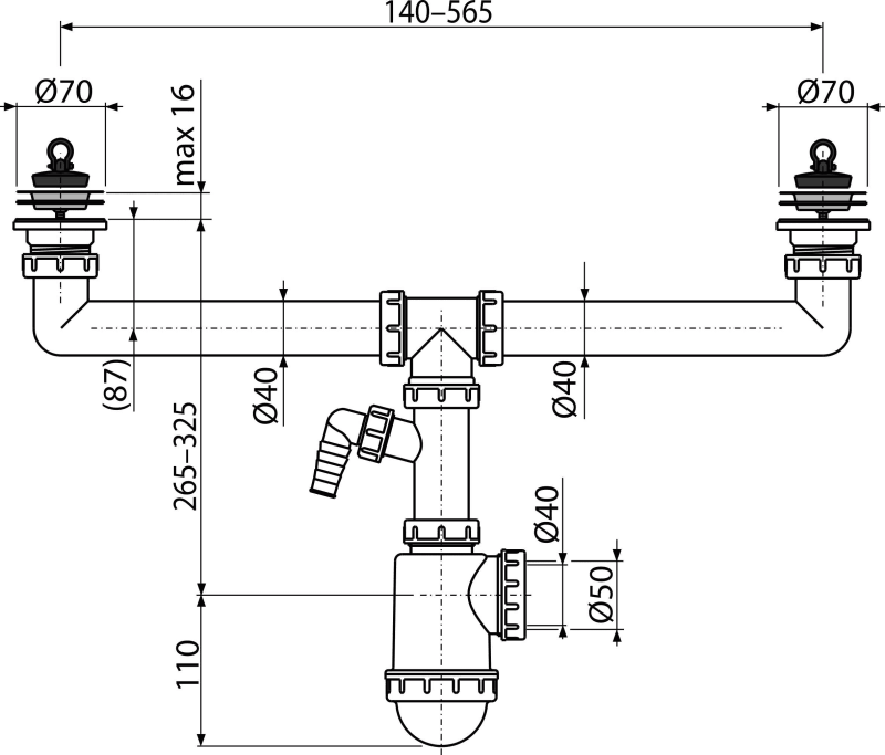 - სიფონის კორპუსი ორი სადინარით და დამაკავშირებლით