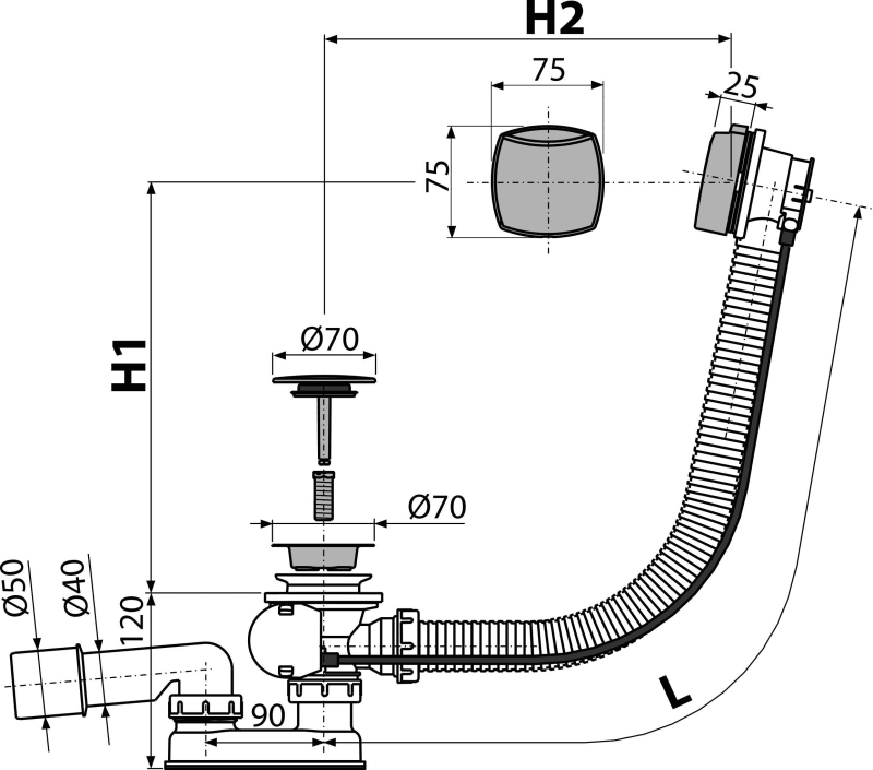 - აბაზანისთვის გადინების ხვრელით Ø52 მმ