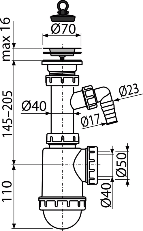 - კანალიზაციის მილებთან დაკავშირების უნარი Ø50 ან Ø40 მმ