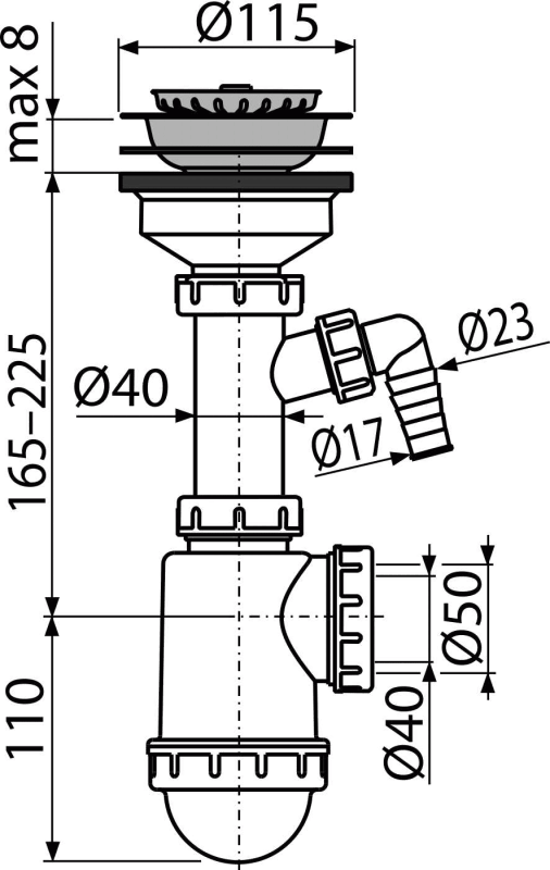 - კანალიზაციის მილებთან დაკავშირების უნარი Ø50 ან Ø40 მმ