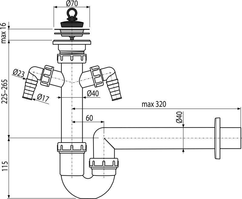 - კავშირი კანალიზაციის მილთან Ø40 მმ