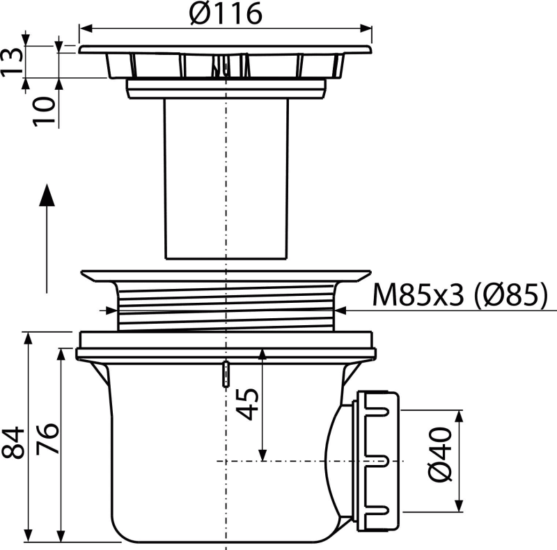 - საშხაპე ქვესადგამებისთვის, გადინებით Ø90 მმ