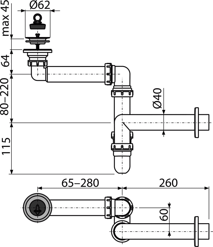- კავშირი კანალიზაციის მილთან Ø40 მმ