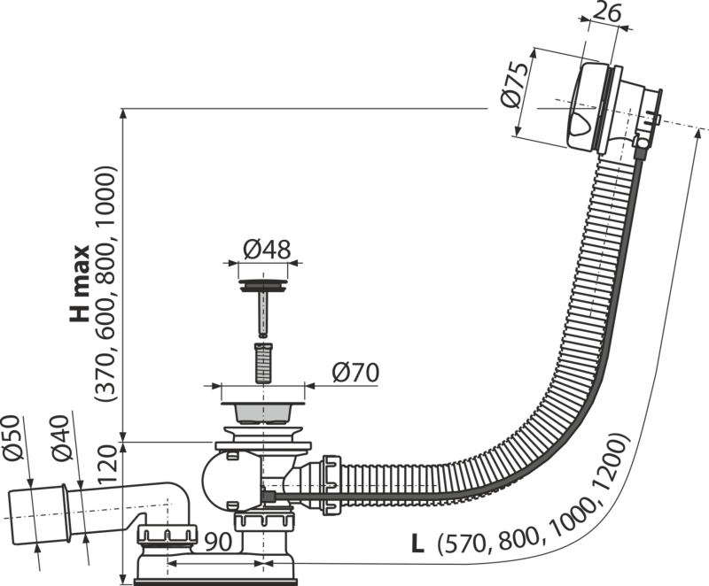 - აბაზანის სიფონის სიგრძე 57 სმ