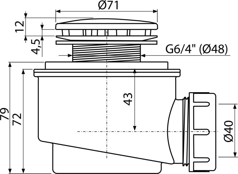 - საშხაპე ქვესადგამისთვის გადინების ხვრელით Ø50 mm
