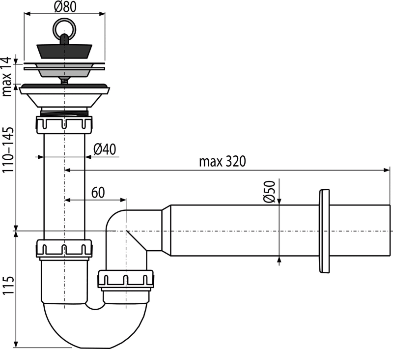 | A35 | Sink waste outlet 6/4" with steel grid DN80 |