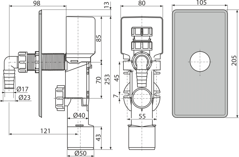 სარეცხი მანქანისთვის განკუთვნილი სიფონი, DN40 და DN50, უჟანგავი მეტალი