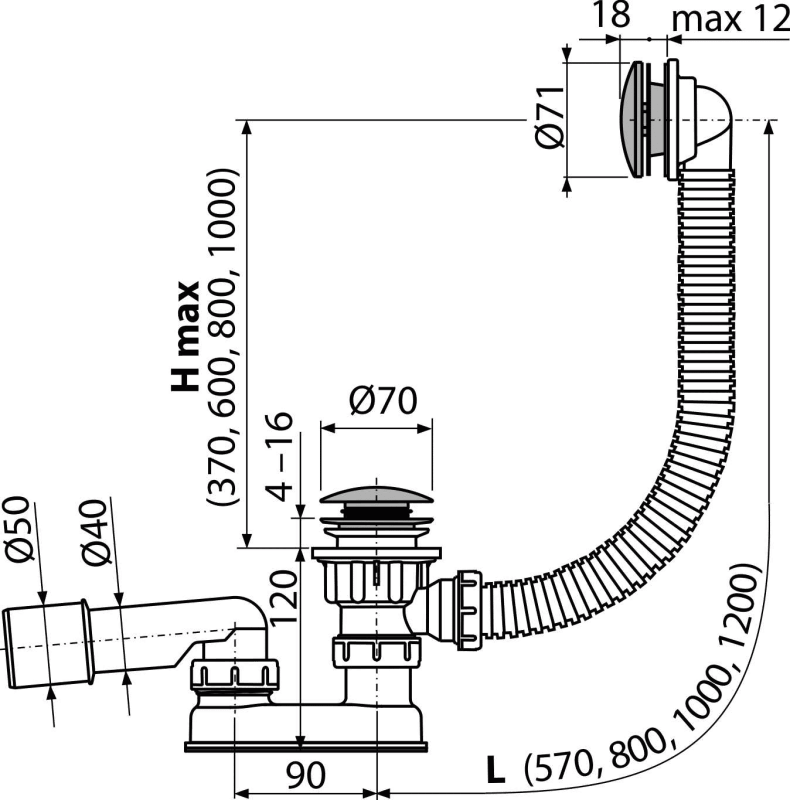 აბაზანის სიფონი CLICK/CLACK, მეტალი