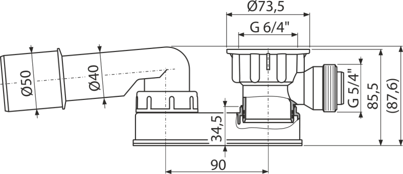 • კავშირი გადინების მილთან Ø40/50 მმ