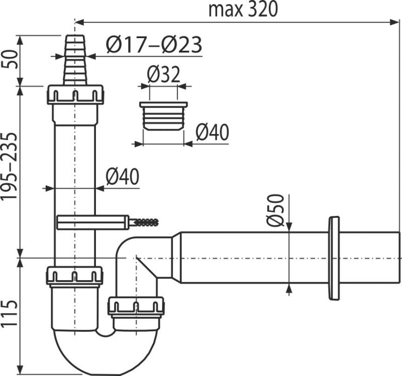 - კავშირი კანალიზაციასთან Ø50 მმ-იანი მილის დახმარებით