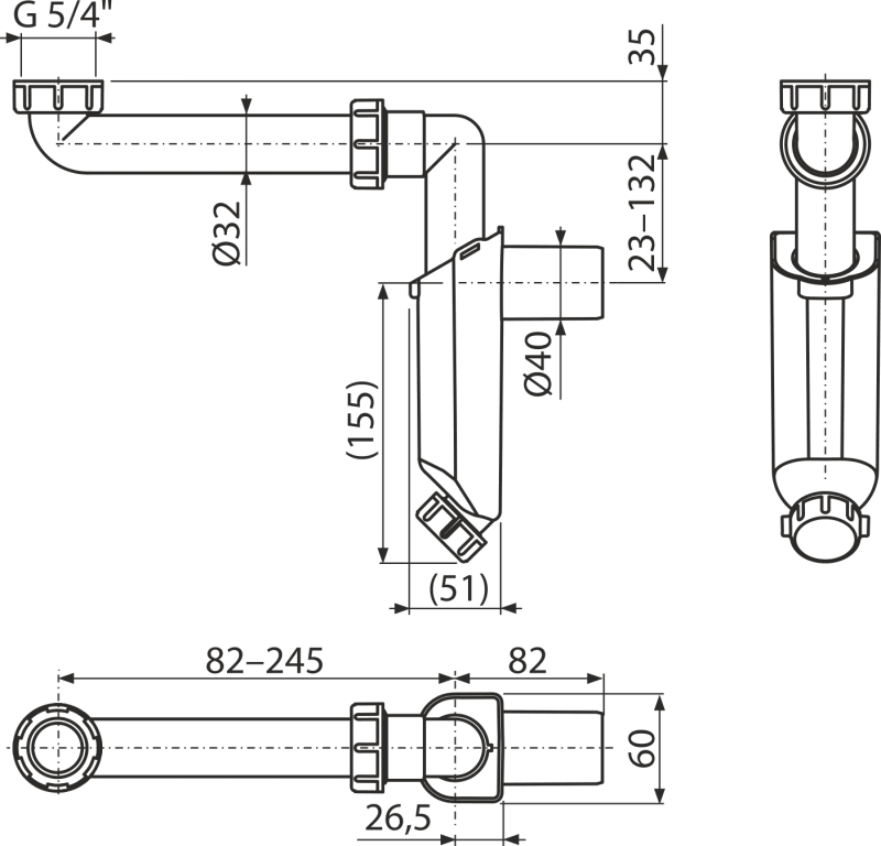 - ხრახნიანი კავშირი 5/4 " ნიჟარასთან ან ბიდესთან გადინების დაკავშირებისთვის